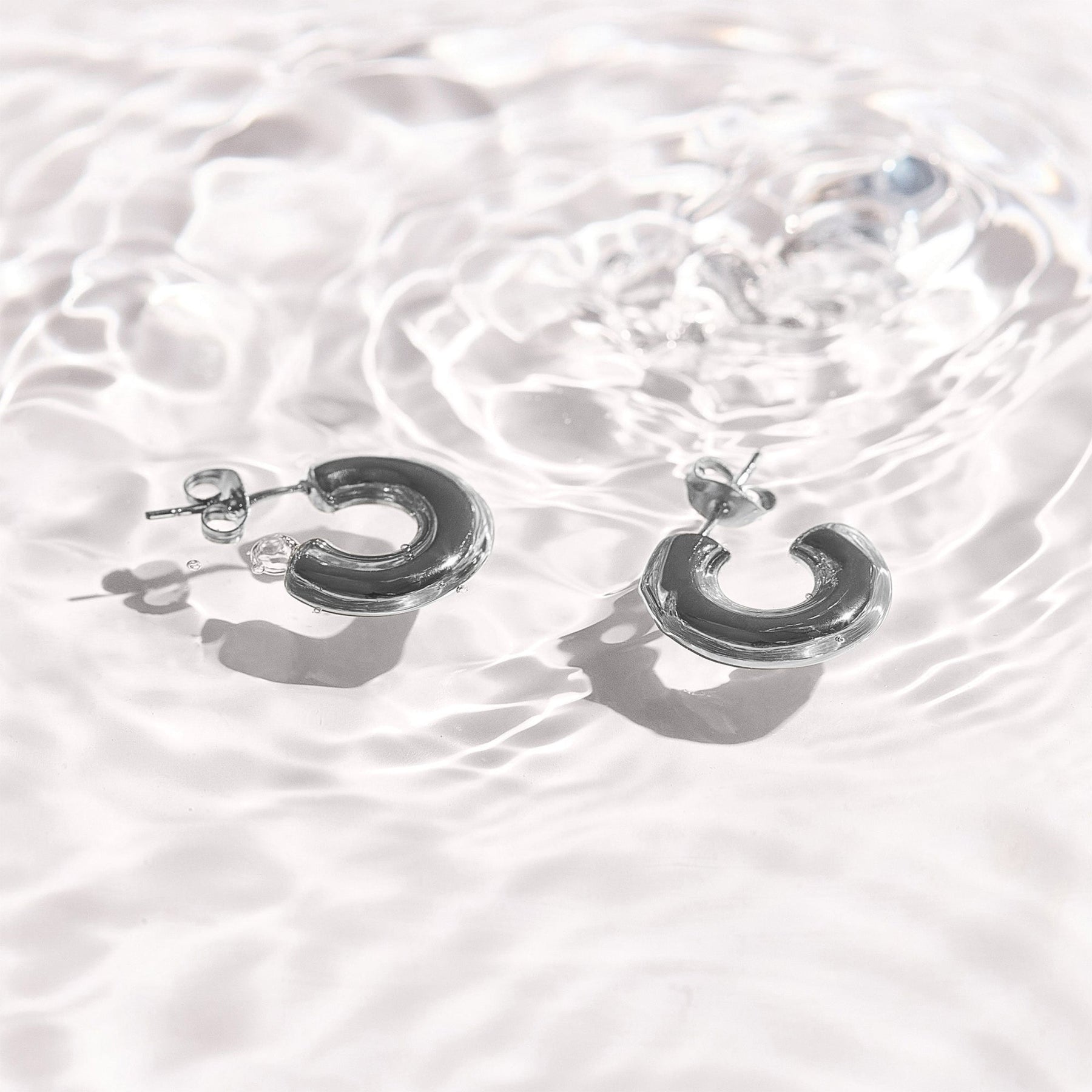 Make a bold statement with these chunky curved hoops. Featuring a smooth, rounded shape and modern open silhouette, they strike the perfect balance between minimal and eye-catching. Lightweight and easy to style, these earrings elevate everything from casual basics to dressed-up looks.