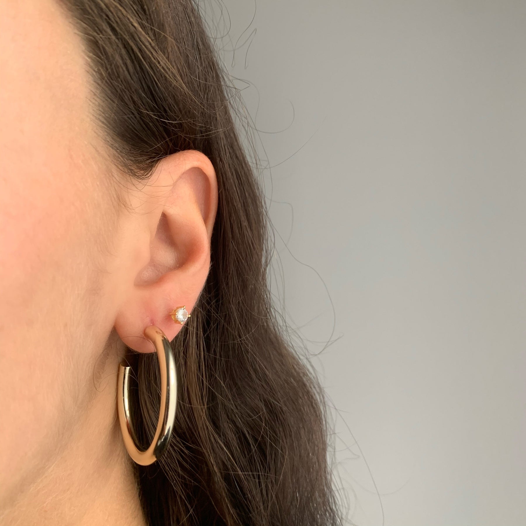 The Miami heat is now here to stay! Add these staple gold hoops to your collection to ensure that your outfit will be looking HOT. Let them shine alone or spice them up by pairing them with our Calabasas earrings for a double hoop moment.