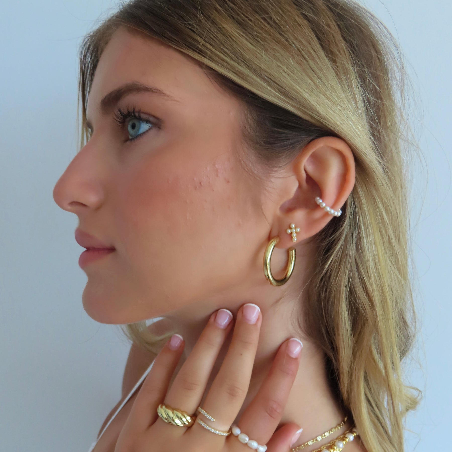 Can you Keep up with the Calabasas hoops? Add these iconic gold hoops to your jewelry collection for a classic earring moment. Let them shine alone or pair them with our Eternity Earrings for a combo worthy of its own reality TV show.