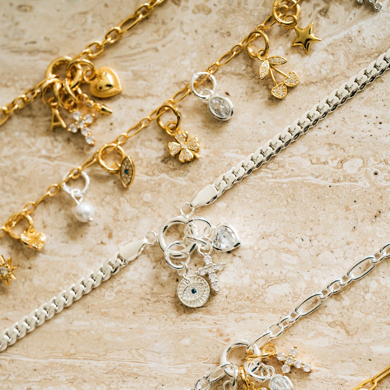 Add some "berry" sweet style to your charm collection with our Cherry Girl Charm! This playful charm features a cherry design adorned with sparkling stones. Perfect for those who love to add a touch of uniqueness to any outfit. Wear it with your bikini or on a necklace or bracelet—either way, you'll bring a touch of nature and sunshine wherever you go.